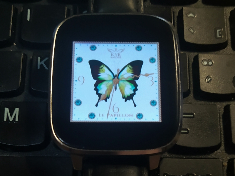 Butterflies are probably the women's favorite insects, so they're perfect for a watchface oriented to women. And the result of a feminine design and butterflies is this beautiful watchfaces collection. Over a marble background with a golden edge, each watchface from this collection has a different butterfly, and diferent colorful crystals with golden edge for the hours marks. A beautiful, stylish and elegant watchface every woman can wear with any kind of outfit.